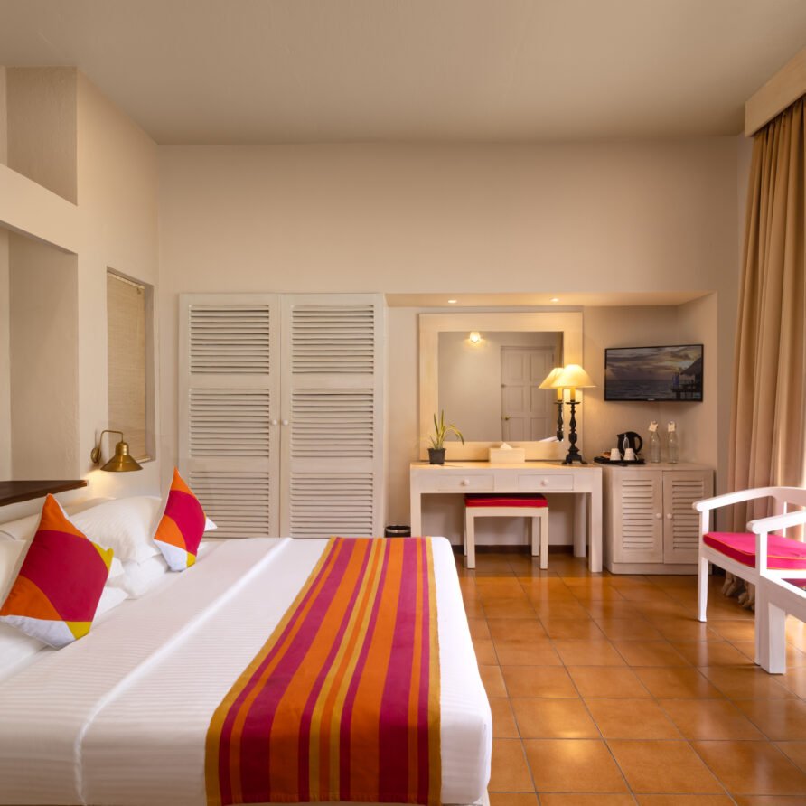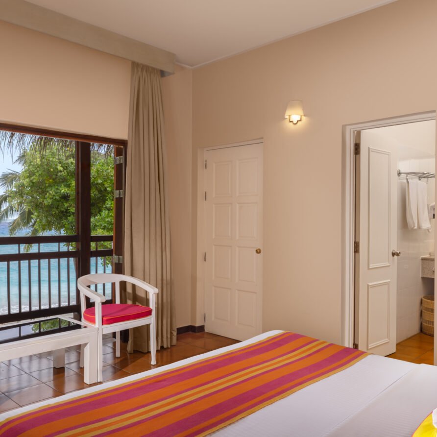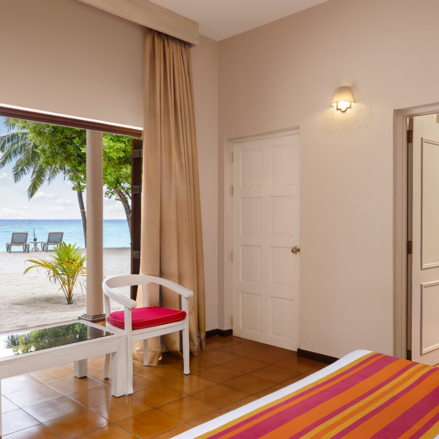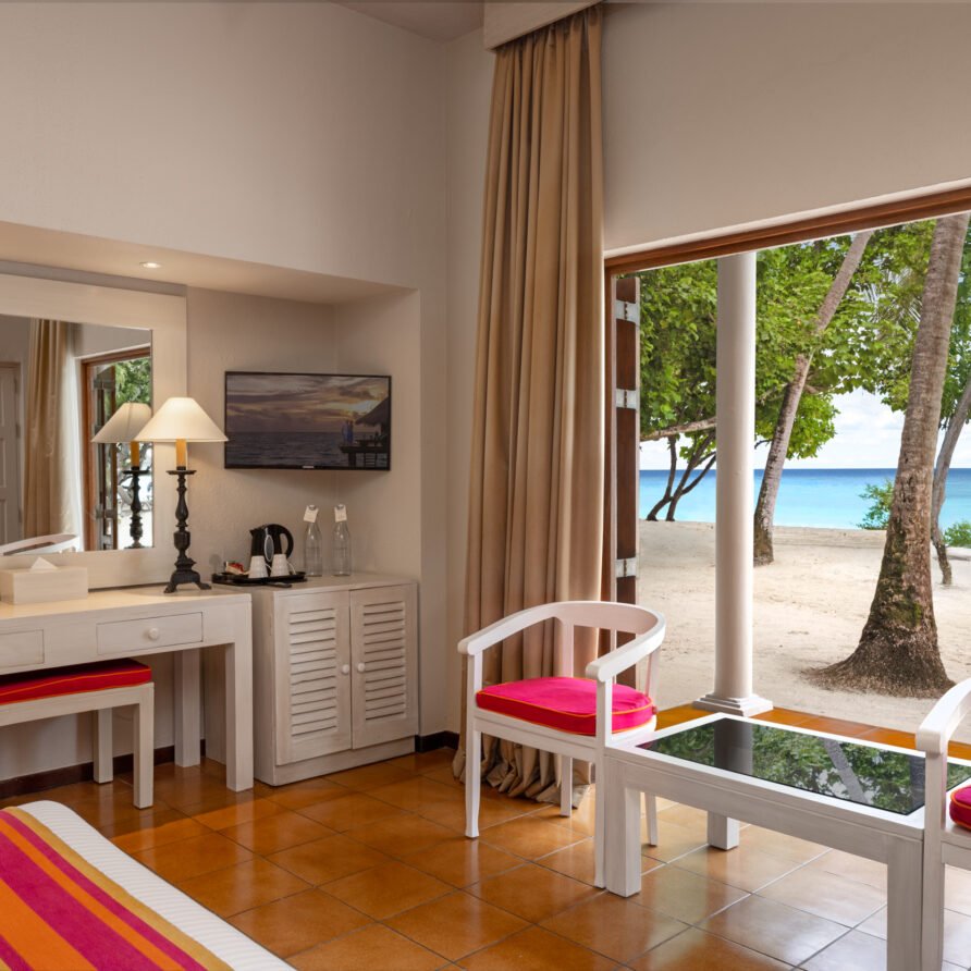 - Amenities: Balcony or Terrace with Ocean or Garden View, Bathroom essentials, Beachfront, Bedroom comforts, Ensuite Bathrooms, Free Excursions for Stays Above 5 Nights, Hair dryer, In-room Safe, Individual Controlled Air-Conditioning, Satellite Television (LCD), Snorkeling Equipment Throughout the Stay, Tea/Coffee Making Facilities, Telephone with IDD Facility, Two Sunbeds, Walk-in Wardrobe, Wi-Fi