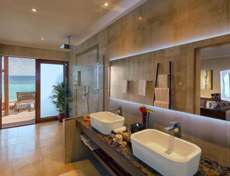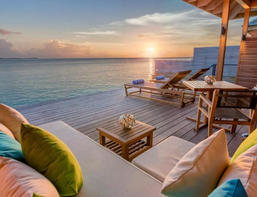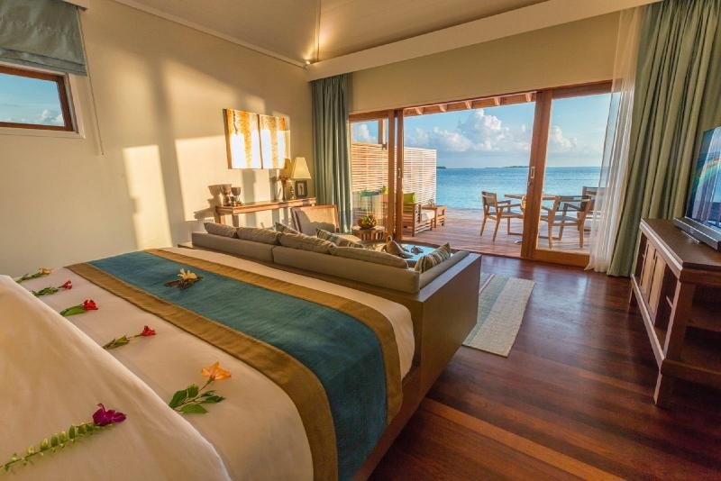 - Amenities: ADULTS ONLY, Bathroom essentials, BEACH SOCCER, Bedroom comforts, Double Vanity, Ensuite Bathrooms, FITNESS CENTER, Free In Room Mineral Water, Hair dryer, In-room Safe, Individual Controlled Air-Conditioning, LOCATION-OVERWATER, , Outdoor Sitting Area, PADEL COURT, Private Patio, Robe & Slippers, Satellite Television (LCD), Sitting Area, Sofa, Tea/Coffee Making Facilities, Telephone with IDD Facility, TENNIS COURT, Terrace, Wardrobe, Wi-Fi, Wooden Ladder from the Sun Deck for Private Access to Surrounding Ocean